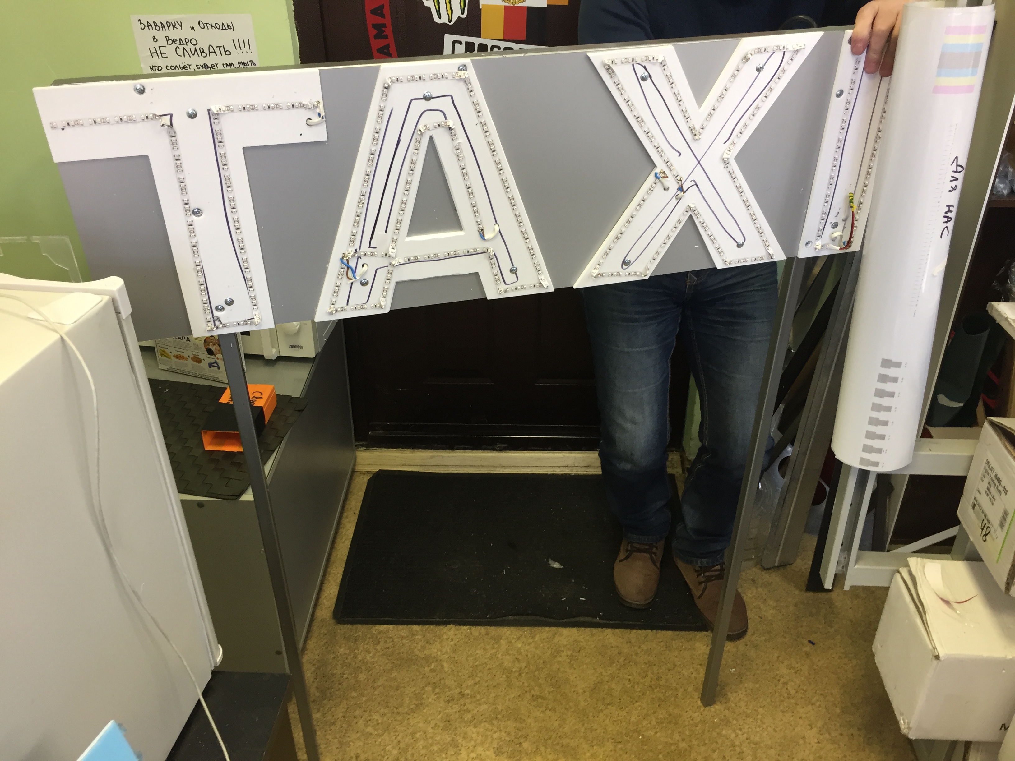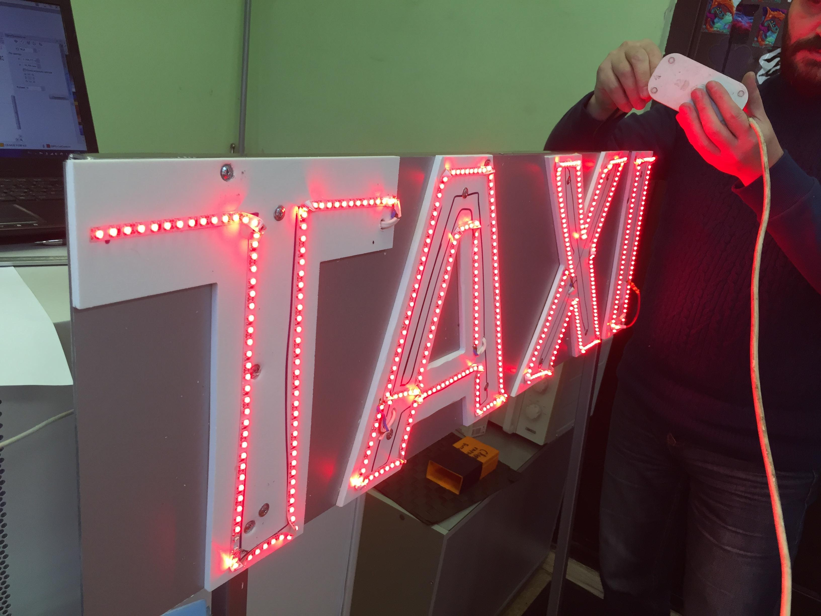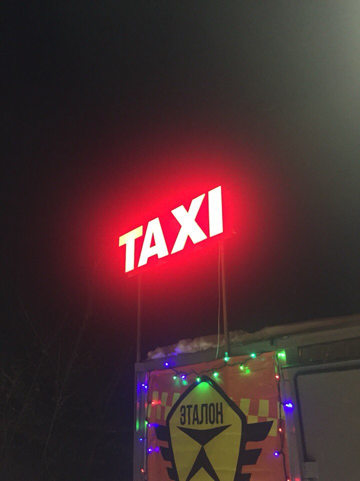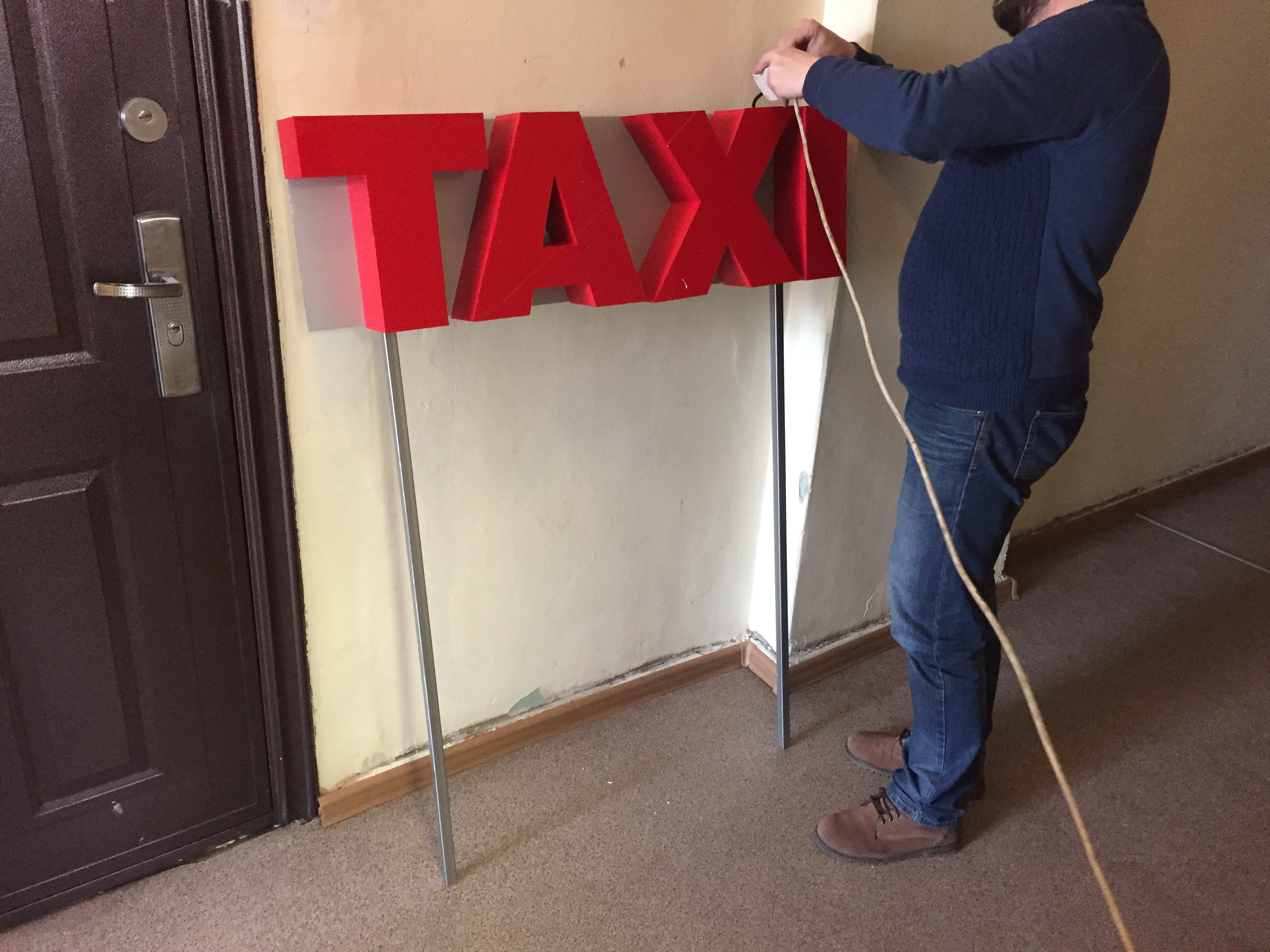 Самый эффективный и подходящий вариант – это использовать световые объемные буквы на вывеске для такси. Слова можно сделать в любых размерах. Также можно добавить подсветку, как внутри них, так и сделать контражуром или наружную. Они хорошо подойдут для интерьера или уличных вывесок для такси.