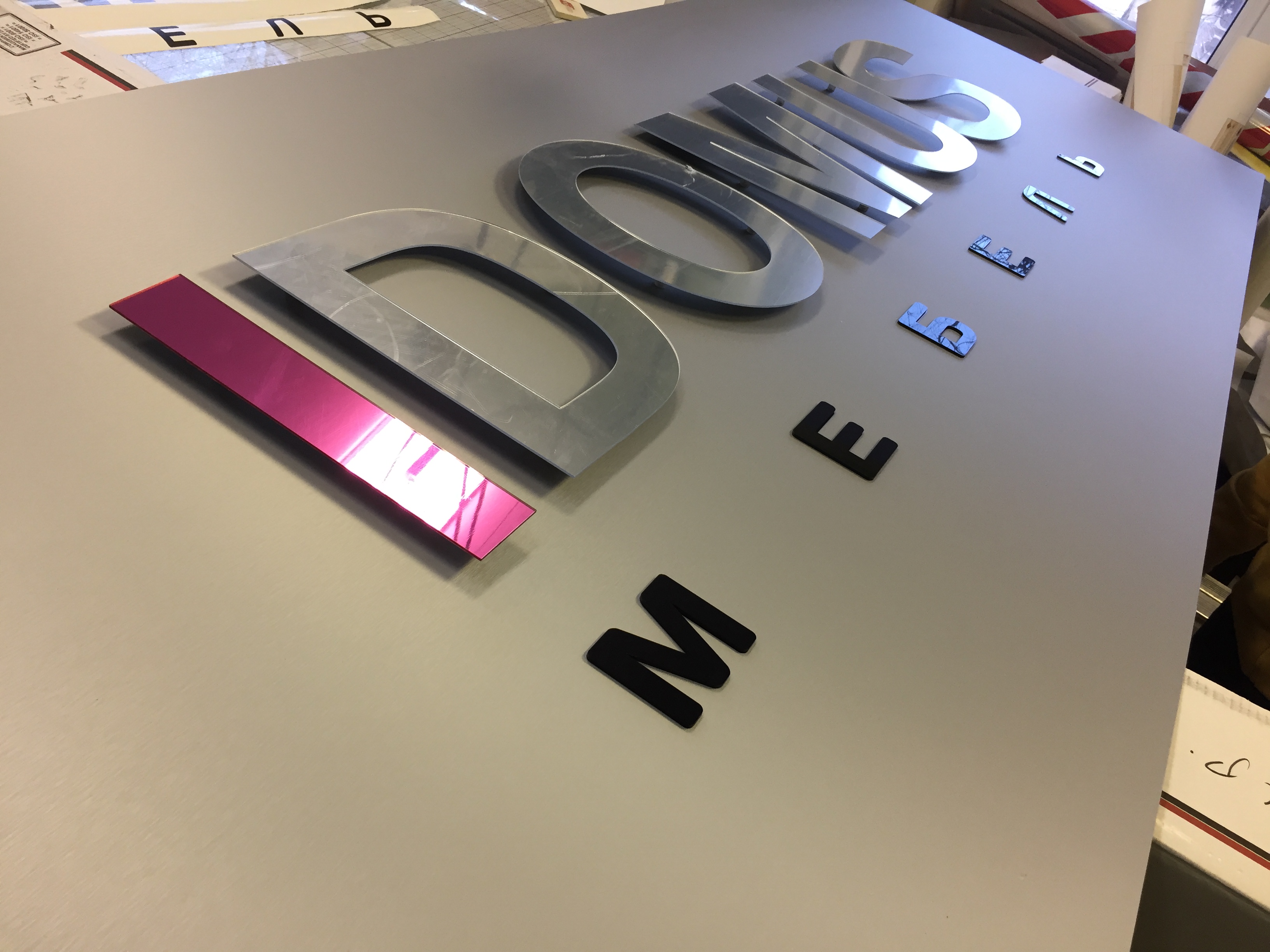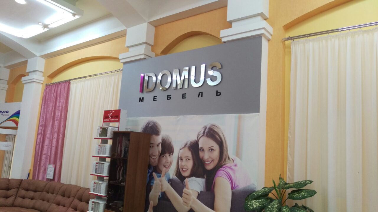 Буквы "IDOMUS" выполнены из зеркального оргстекла , буквы "мебель" выполнены из черного оргстекла.