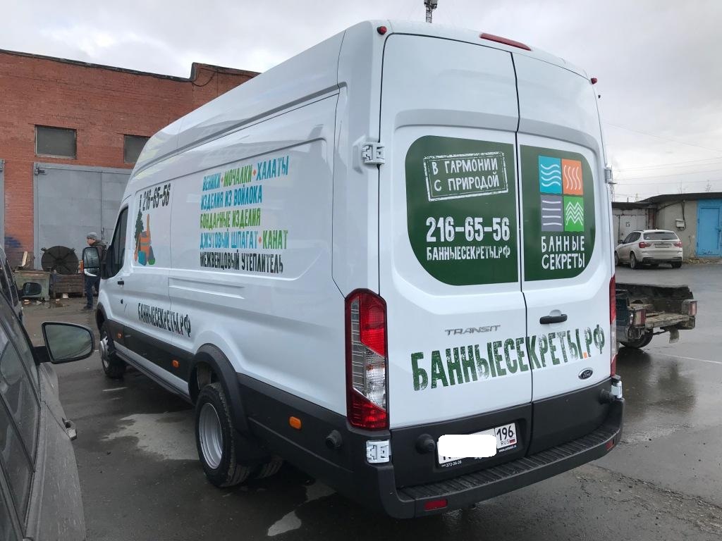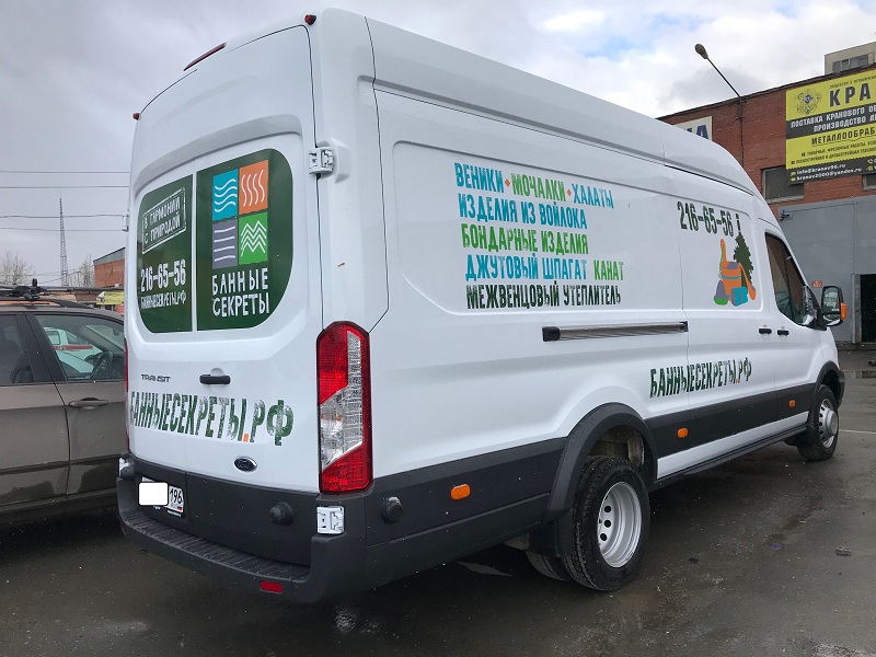 Брендирование грузового автотранспорта – одна из основных задач, решаемых усилиями специалистами «Print Ural». Нанесение рекламы на крупногабаритный «Форд Транзит» для компании «Банные секреты. РФ», было выполнено в ярком и креативном стиле.