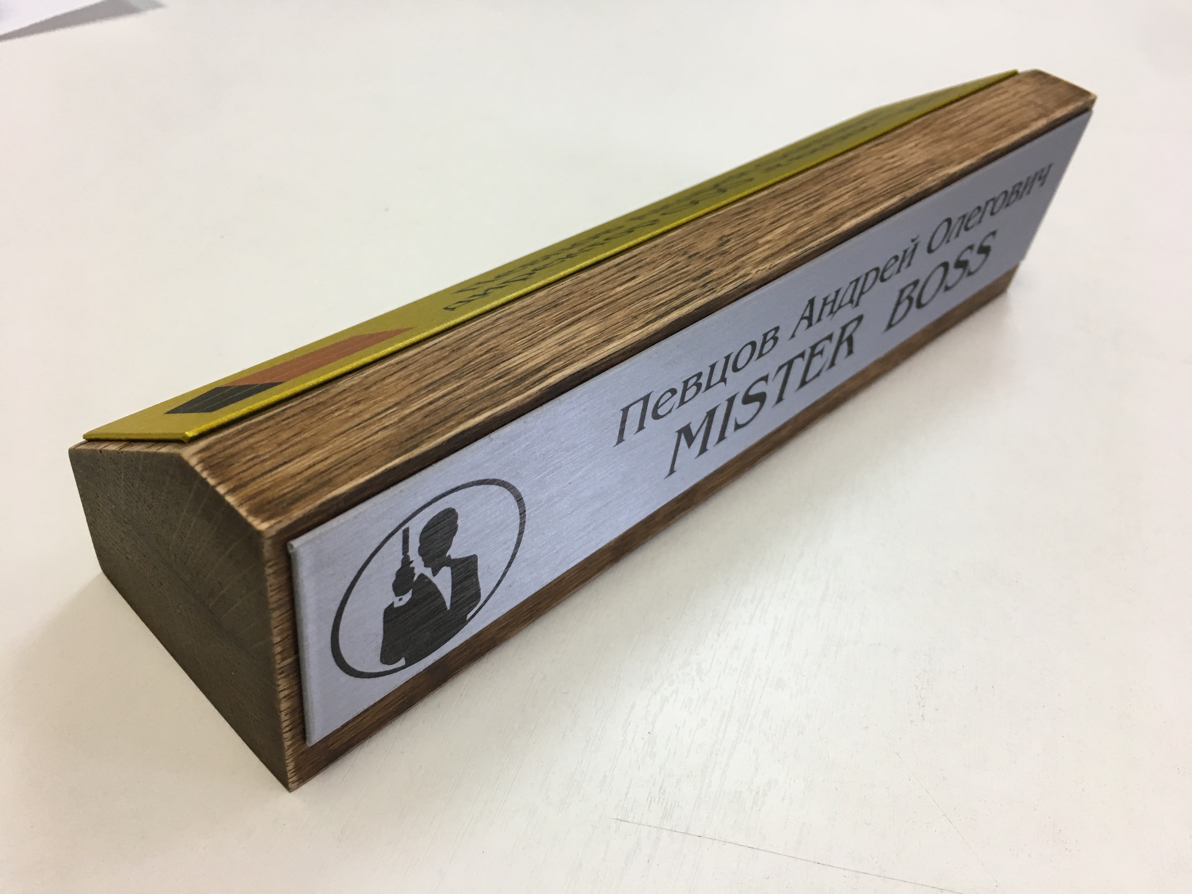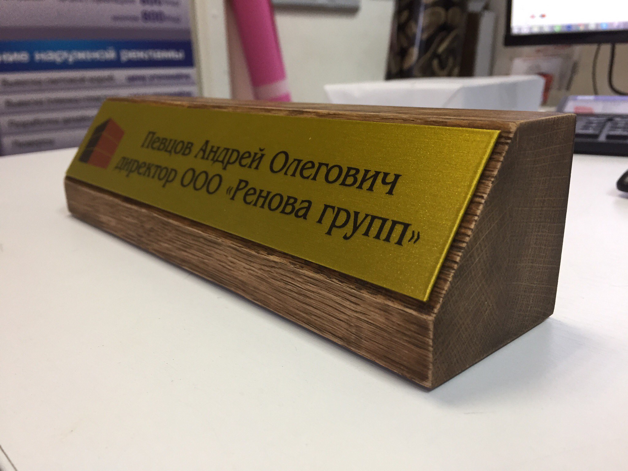 Настольная табличка из дуба, изготавливаемая компании ООО «Print-Ural» станет оригинальным дополнением в интерьере любого офиса, гостиницы или ресторана.
