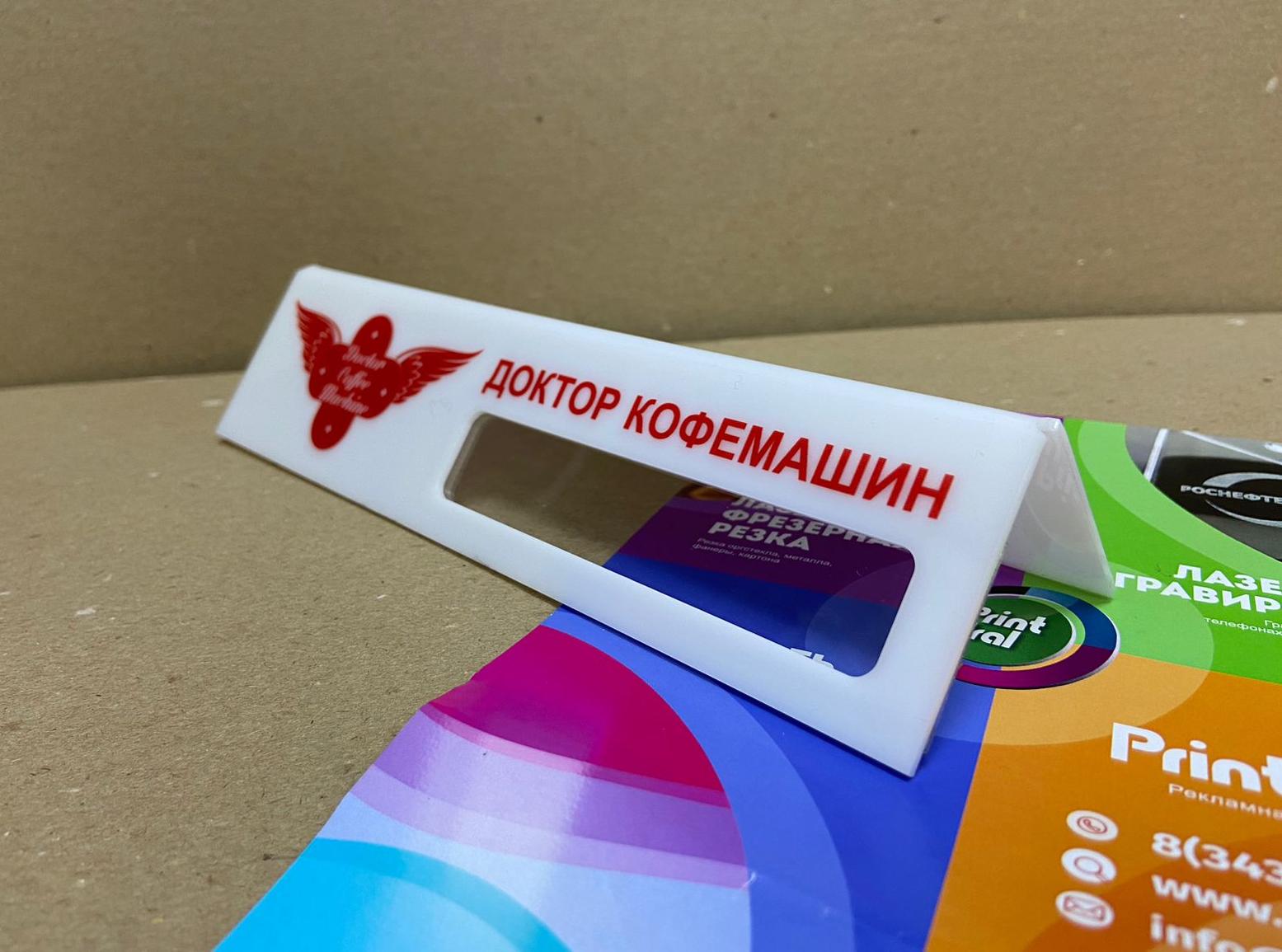 Табличка настольная, изготовленная в "Print Ural" на самом современном оборудование станет прекрасным дополнением любого рабочего интерьера офиса, ресторана, кафе или гостиницы.