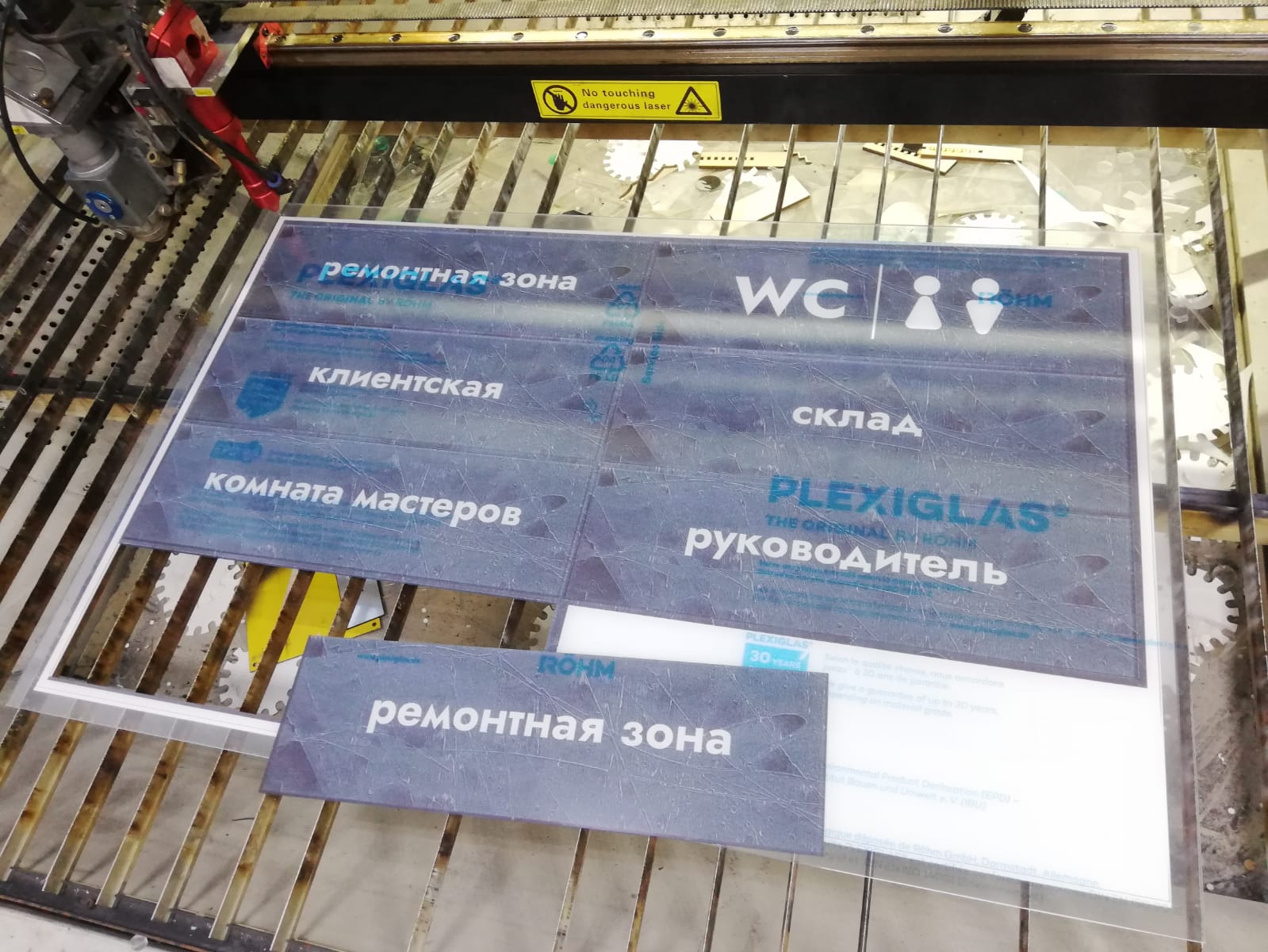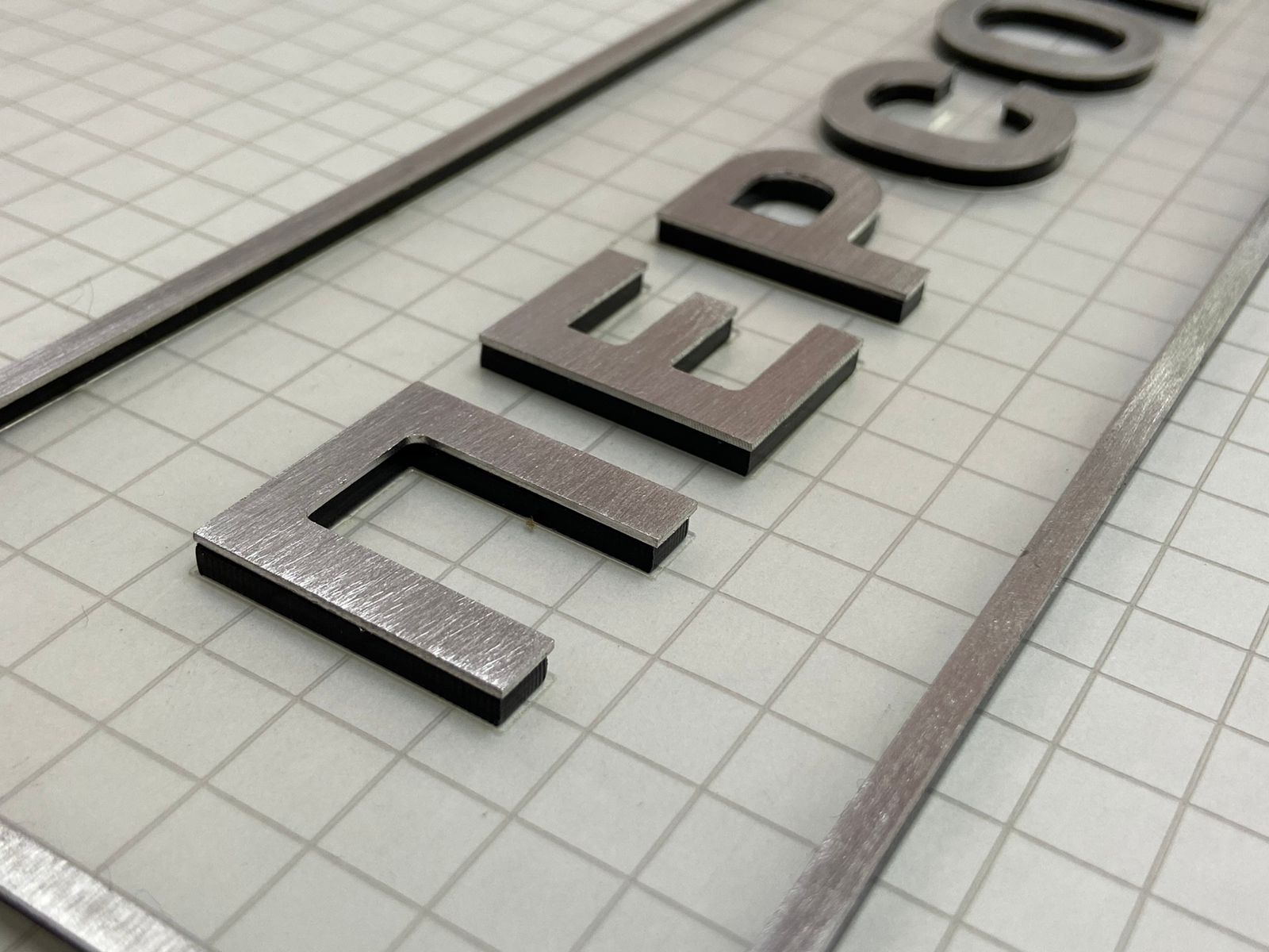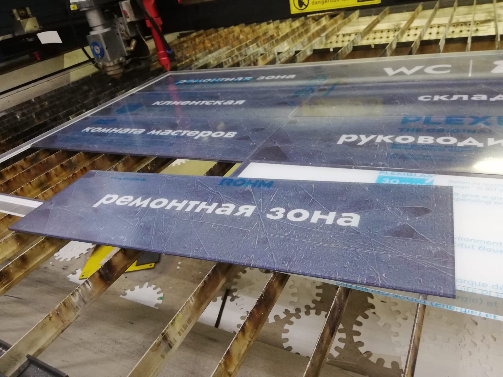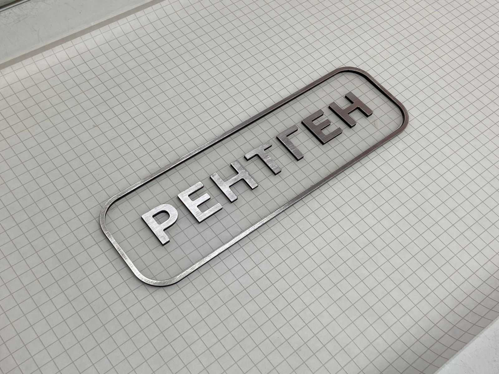 Данная табличка изготовлена из пленки под шлифованный алюминий, на саму пленку мы нанесли печать. Основа может быть: если на улицу, то лучше алюминиевый композит 3мм, если в помещении - то пластик Пвх 3мм.